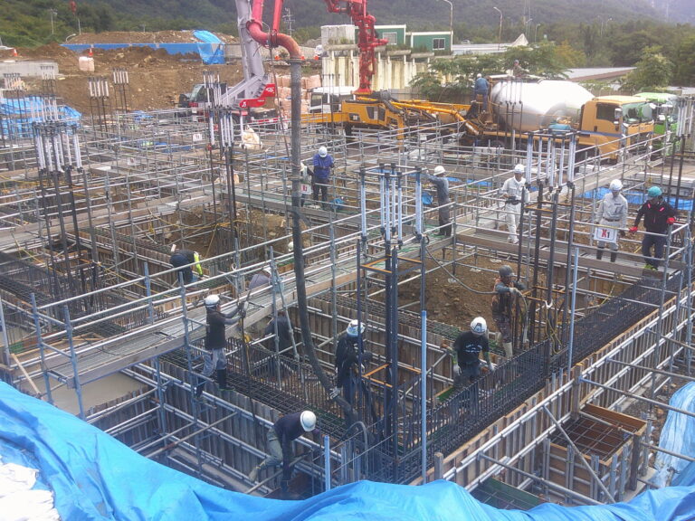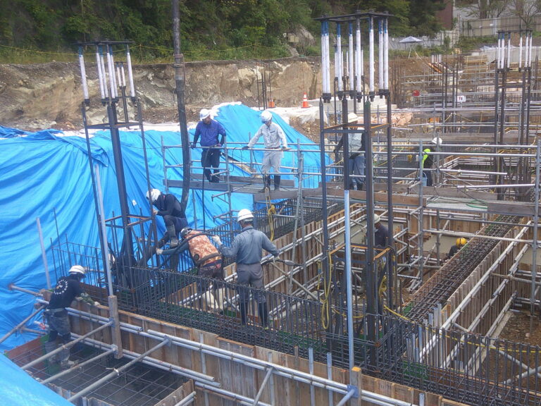 2025年10月15日 / 最終更新日時 : 2025年10月15日 admin_k リサイクルセンター リサイクルセンター建設工事進捗状況(基礎配筋・コンクリート打設工事) 地盤改良工事完了後 基礎配筋工事・コンクリート打設工事を進めています。 ■ 基礎配筋工事 8月22日(金)~ 基礎構造の骨組みとなる鉄筋組立工事実施 ■ コンクリ―ト打設工事 9月8日(月)~ 配筋検査・型枠検査完了後打設工事実施 エリアC 配筋工事 エリアC 配筋状況 エリアC 配筋検査 エリアA 配筋工事 エリアA 配筋状況 エリアA 配筋検査 エリアC工事全景 コンクリート打設 コンクリート・型枠 エリアA工事全景 コンクリート打設 生コン注入状況確認 基礎工事は エリアC➡エリアA➡エリアBの順に進捗を図ります。 ※エリアCは、1階プラットホームとなるエリアであり先行して工事を進めています。エリアAは、成形品の圧縮機械などを設置する地下1階のエリアとなります。エリアBは、エリアAの工事完了後に着手します。 現在 エリアCの基礎工事が完了、エリアAを中心に工事を実施中。年明けを目途に基礎工事完了後、一部プラント機械搬入開始予定。 エリアC 基礎工事完了 エリアA 土間配筋工事中 工事区域全景 10/14