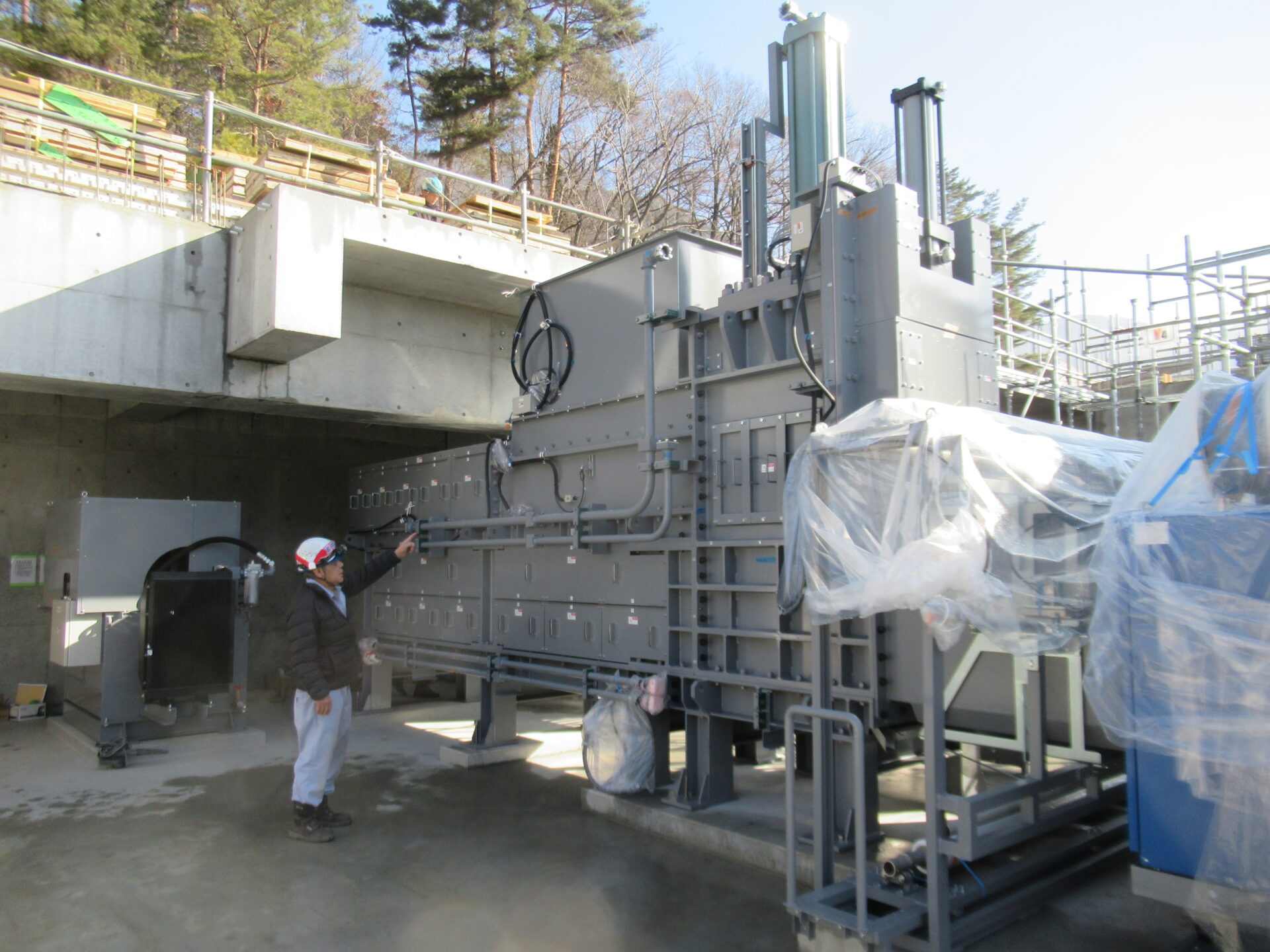 2026年2月23日 / 最終更新日時 : 2026年2月23日 admin_k リサイクルセンター エリアA(地下部)プラント機械一次設置工事実施 エリアA(地下部成形エリア)プラント機械一次搬入実施 1月14日(水)~16日(金) ■エリアAの地下部には、破砕や選別後の資源物を圧縮・梱包する機械を設置します。 基礎工事(地下部)の完了により、機械類の一次搬入設置を実施し、プラント建設工事がスタートしました。プラント機械設置は大型クレーンを使用し効率的に工事を進めます。 搬入設置機械 プラスチック類梱包機及び油圧ユニット 地下部には 鉄アルミ類圧縮プレス機・缶類圧縮プレス機の3台が設置されます。 大型クレーンで搬入 搬入状況① 搬入状況② 地下室内で組み立て メーカー・コンサル検収 1m角のプラスチックベールを成形