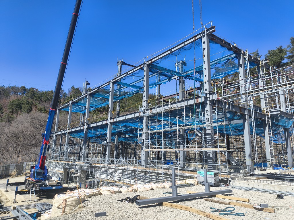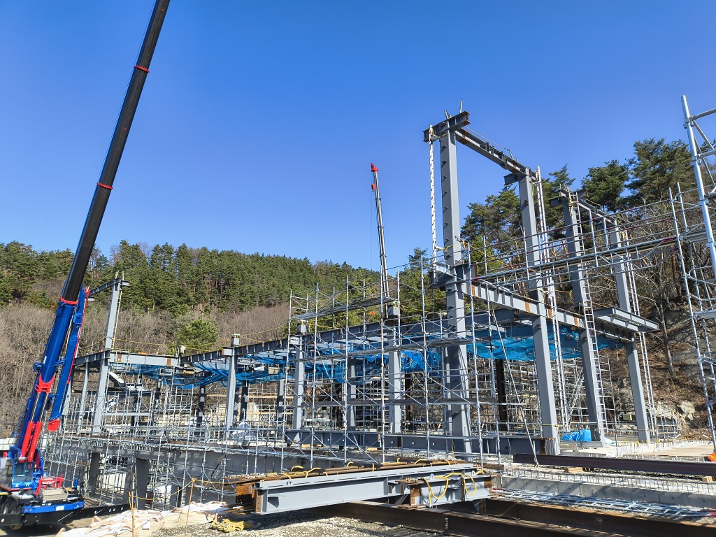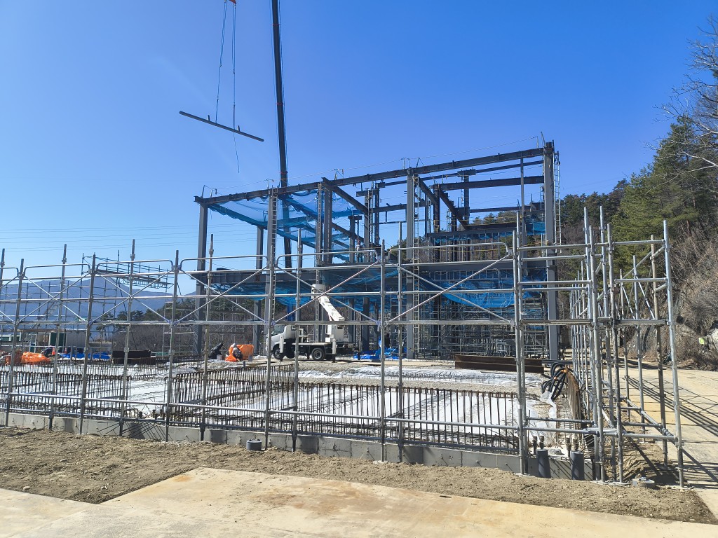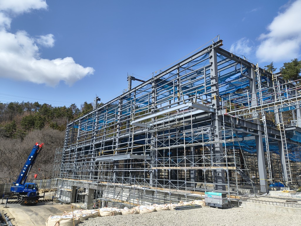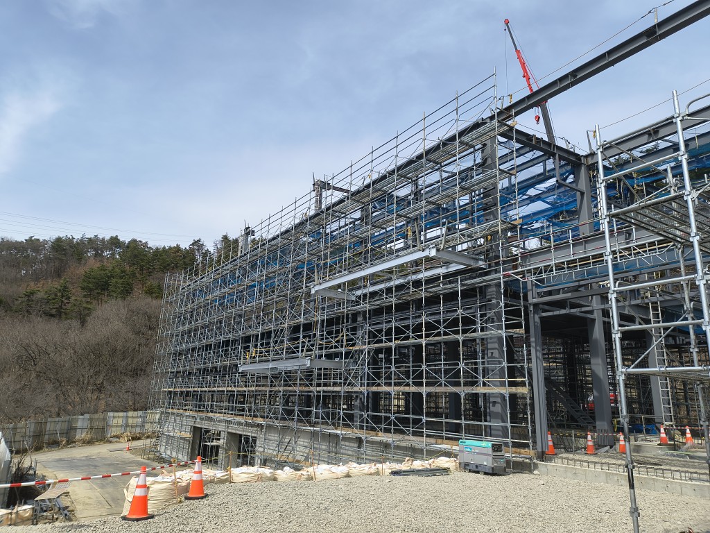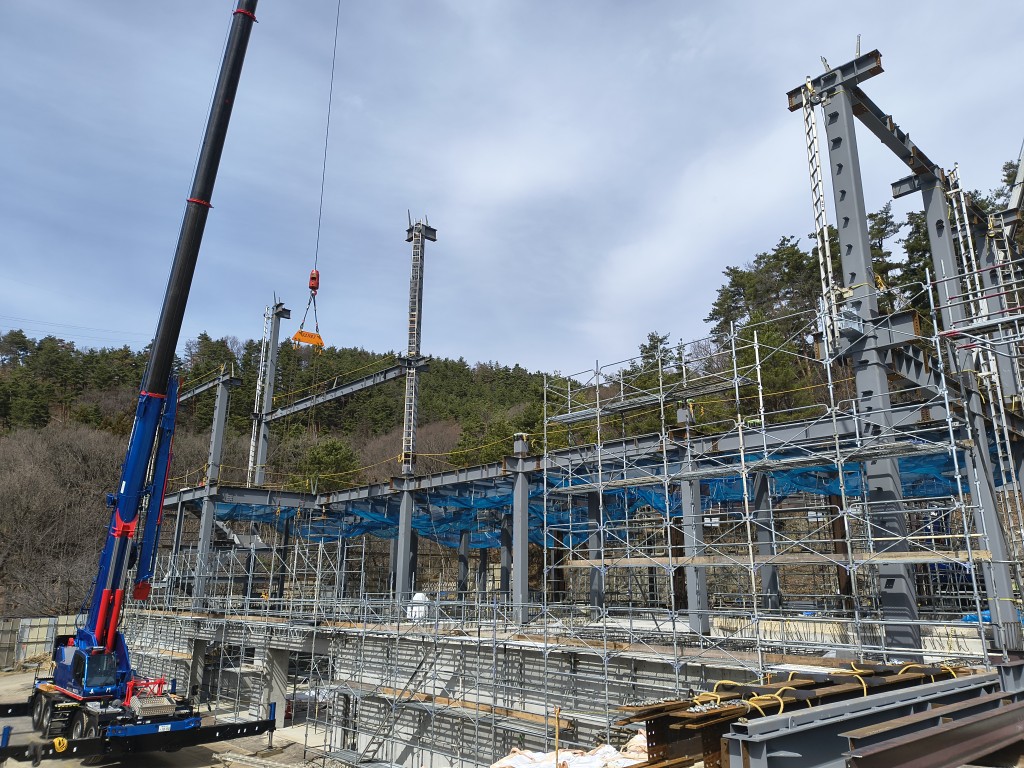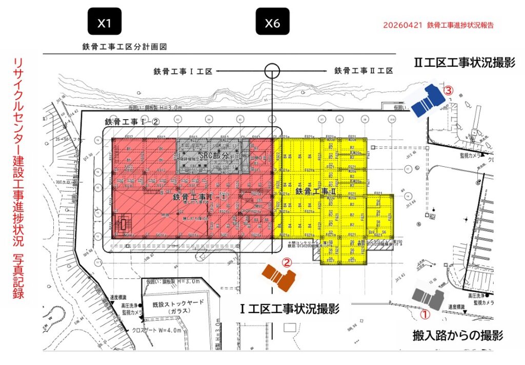 2026年4月21日 / 最終更新日時 : 2026年4月21日 admin_k リサイクルセンター リサイクルセンター建設工事進捗状況 (建屋鉄骨工事 第Ⅰ期完了) 建屋鉄骨工事(第Ⅰ期工事)完了 3月から進めていた 建屋鉄骨工事(第1期)が3月末で完了しました。建屋工事は、完成時の概ねの建物規模が感じられる状況に進んでいます。4月からは、1階の資源物受入エリアからプラント機械の設置工事を進めています。概ね9月頃まで、破砕機室、手選別室、機械選別室などの内部工事とリサイクル機械設置工事を交互に行い工事の進捗を図ります。 ①搬入路からみた工事進捗 ①3月5日 ②3月6日 ③3月7日 ④3月11日 ⑤3月17日 ⑥3月18日 ⑦3月20日 ⑧3月21日 ⑨3月27日 ⑩3月30日 ⑫4月6日 ⑪4月3日 ②Ⅰ工区(東側機械設置エリア)の工事進捗 ①3月5日 ②3月6日 ③3月7日 ④3月9日 ⑤3月10日 ⑥3月11日 ⑦3月15日 ⑧3月17日 ⑨3月18日 ⑩3月22日 ⑪3月26日 ⑫3月30日 ③Ⅱ工区(資源物受入エリア)の工事進捗 ①3月4日 ②3月7日 ③3月11日 ④3月15日 ⑤3月17日 ⑥3月18日 ⑦3月21日 ⑧3月22日 ⑨3月26日 ⑩3月27日 ⑪3月30日 ⑫4月8日 鉄骨工事計画図 プラント機械設置工事予定 資源物受入機械設置工事(予定)4月 1)プラスチック類受入ホッパ・プラスチック類供給コンベア 2) 缶類受入ホッパ・缶類供給コンベア 3)不燃物受入ホッパ・不燃物供給コンベア 引き続き 安心・安全を第一に工事を進めてまいります。